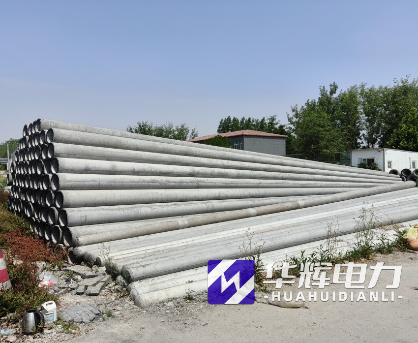 8米商都水泥电线杆通常采用钢筋混凝土离心成型工艺,杆体呈锥形结构,梢径150mm-190mm,根径230mm-270mm,壁厚40mm-50mm。根据标准GB/T4623-2014,产品混凝土强度等级不低于C40,主筋采用HRB400级钢筋,配筋量根据抗裂弯矩要求设计,标准抗裂弯矩可达12-18kN·m,破坏弯矩不小于24kN·m。杆体重量约0.5-0.8吨,运输安装便捷,适合人工或小型机械施工。